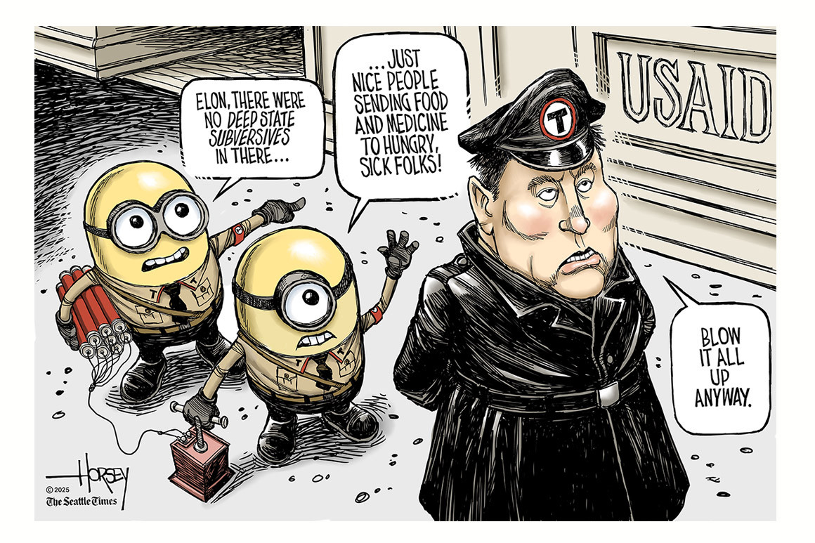 Select the logo to go to a New Republic article:Trump-Musk Scandal at USAID Takes Unnerving Turn With Vile Leaked Memo