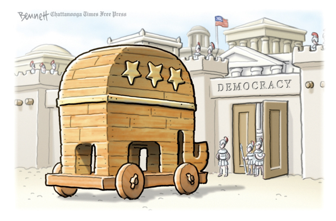 Select the logo to go to a Washington post article:Trump administration cuts teams that fight foreign election interference