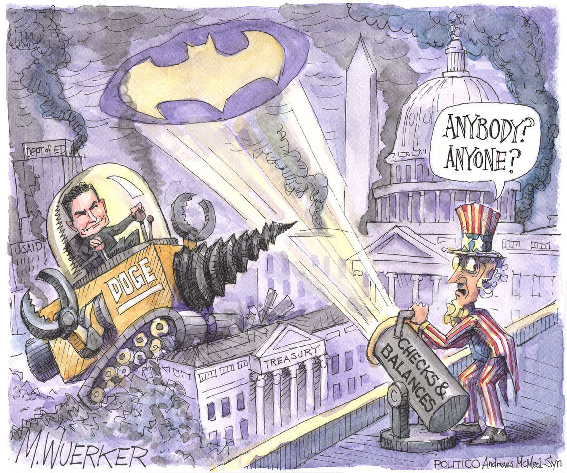 Select the logo to go to a Daily Breeze article:Trump and Musks dismantling of government is shaking the foundations of US democracy